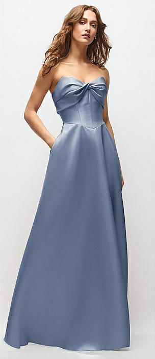 Strapless Cuff Satin Maxi Dress with Column Skirt & Back Bow in larkspur blue