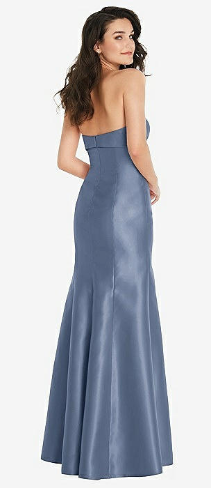 Bow Cuff Strapless Princess Waist Trumpet Gown in larkspur blue