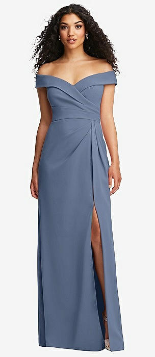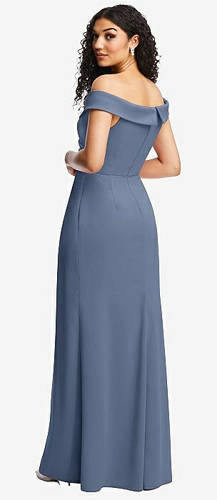 Off-the-Shoulder Cuff Trumpet Gown with Front Slit in larkspur blue