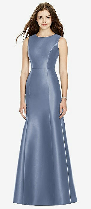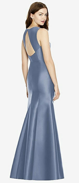 Sleeveless Satin Trumpet Gown with Bow at Open-Back in larkspur blue