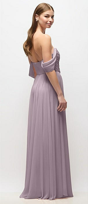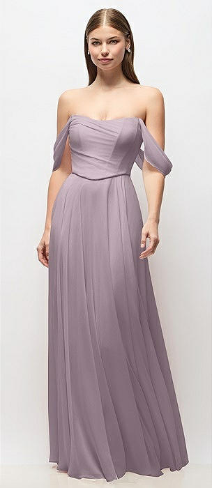 Chiffon Corset Maxi Dress with Removable Off-the-Shoulder Swags in lilac dusk