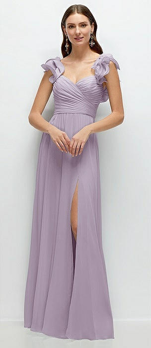 Dramatic Ruffle Edge Strap Chiffon Maxi Dress in lilac haze
