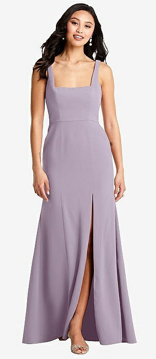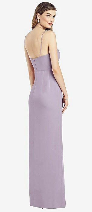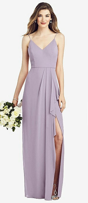 Spaghetti Strap Draped Skirt Gown with Front Slit in lilac haze