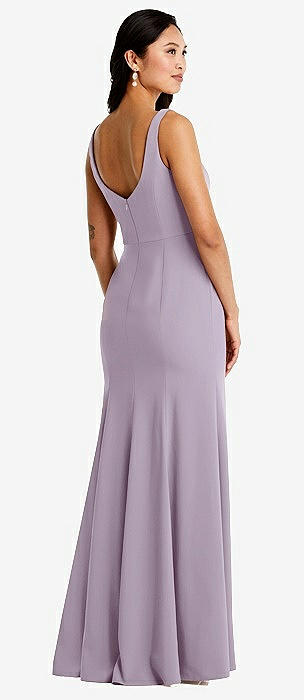 Off-the-Shoulder Bow-Back Satin Trumpet Gown in lilac haze