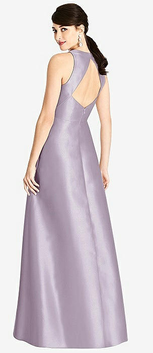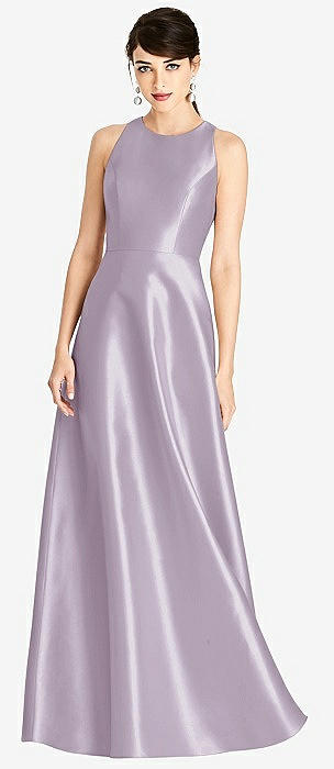 Sleeveless Open-Back Satin A-Line Dress in lilac haze