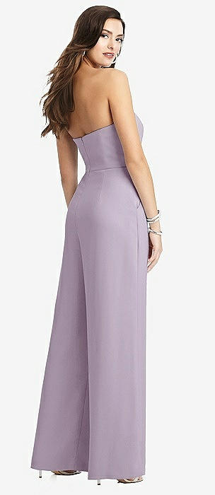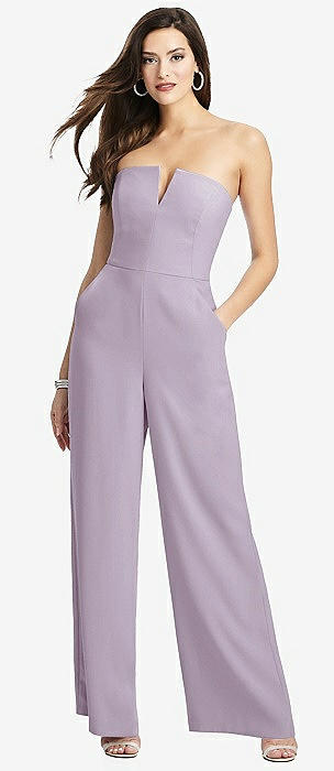 Strapless Notch Crepe Jumpsuit with Pockets in lilac haze