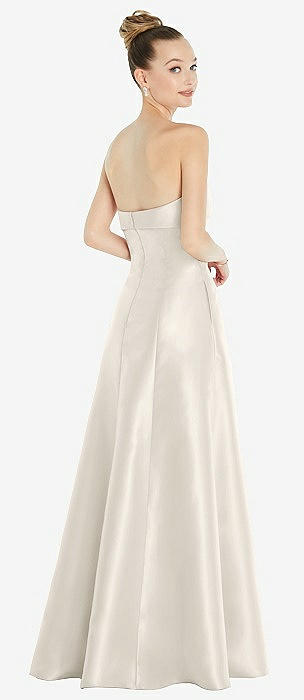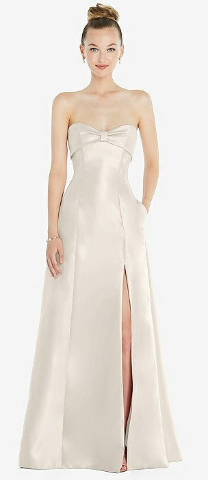 Bow Cuff Strapless Satin Ball Gown with Pockets
