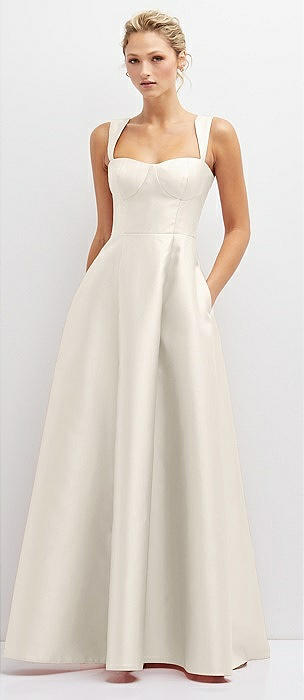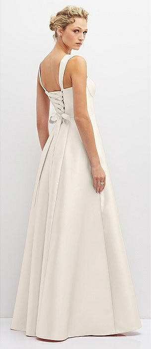 Lace-Up Back Bustier Satin Dress with Full Skirt and Pockets