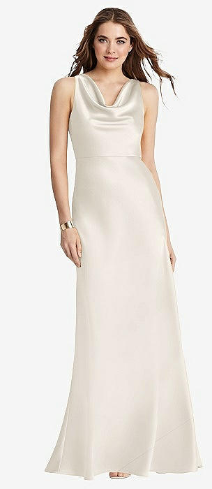 Cowl-Neck Wide Strap Crepe Trumpet Gown with Front Slit in ivory