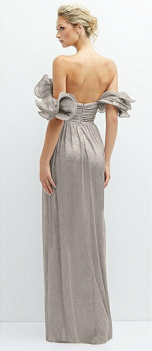 Dramatic Ruffle Edge Convertible Strap Metallic Pleated Maxi Dress