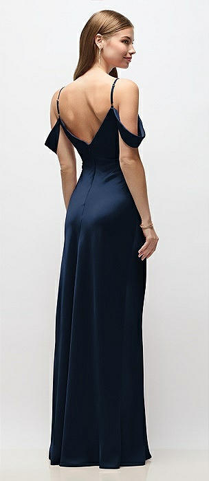 Off-the-Shoulder Swag Ruched Side Satin Bias Maxi Dress with Adjustable Spaghetti Straps in midnight navy