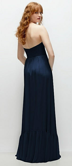 Strapless Chiffon Maxi Dress with Tiered Micro Ruffle Full Skirt in midnight navy