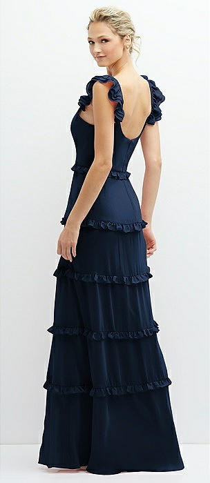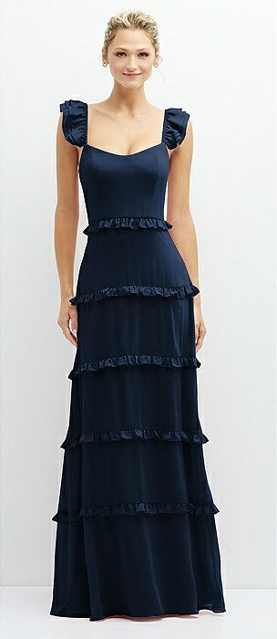 Tiered Chiffon Maxi A-line Dress with Convertible Ruffle Straps in midnight navy