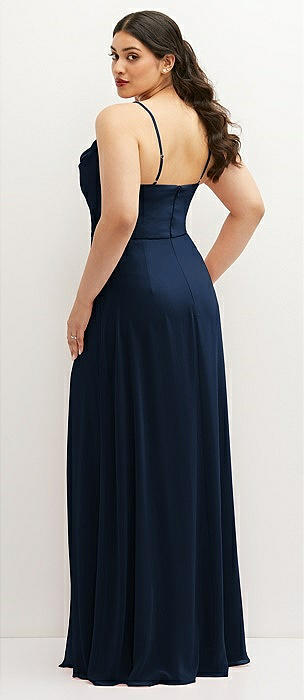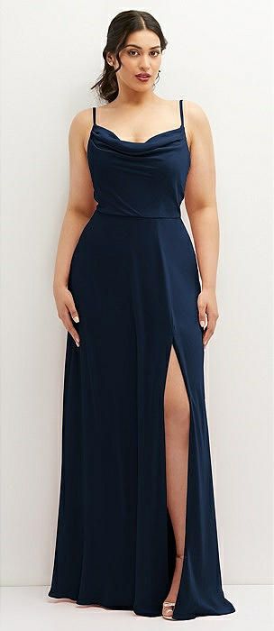 Cowl-Neck A-Line Maxi Dress with Adjustable Straps in midnight navy