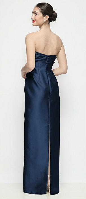 Strapless Pleated Empire Satin Column Maxi Dress in midnight navy
