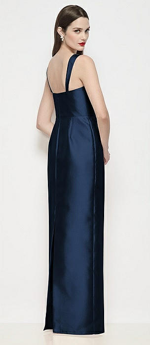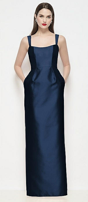 Shaped Strap Basque Neck Satin Maxi Dress with Column Skirt in midnight navy