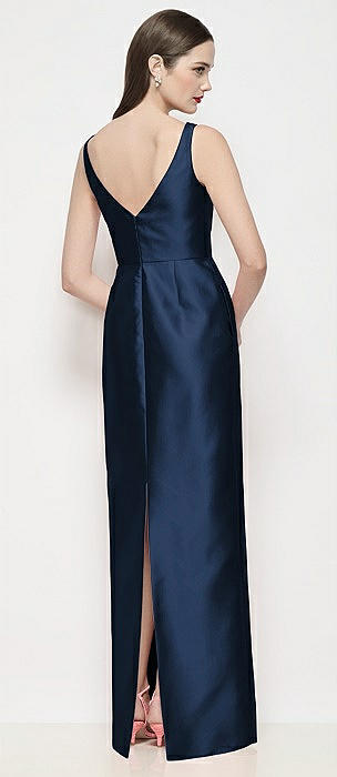 Sleeveless V-neck Satin Maxi Dress with Pleated Skirt in midnight navy