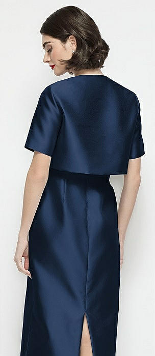 Strapless Bow-Waist Satin Column Dress with Overskirt in midnight navy