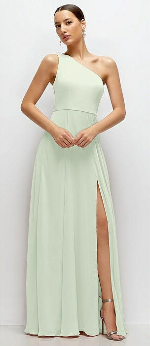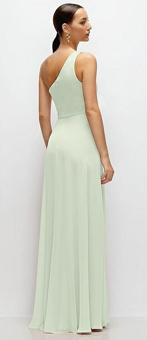 Chiffon One-Shoulder Maxi Dress with Circle Skirt in mint green
