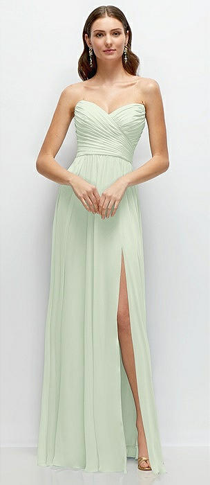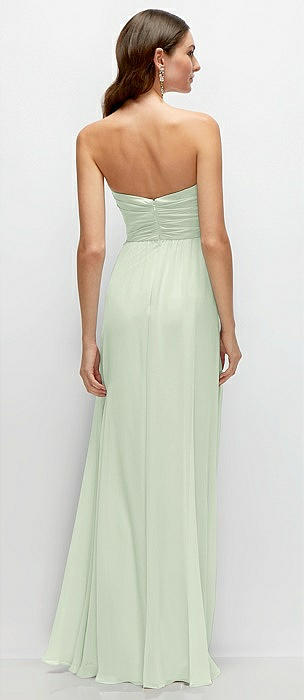 Strapless Pleated Surplice Chiffon Maxi Dress with A-Line Skirt in mint green