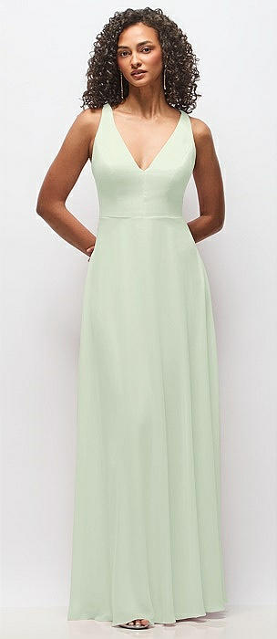 Deep V-Neck Chiffon Maxi Dress in mint green