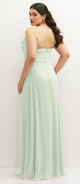 Cowl Neck Chiffon Maxi Dress with Hand-Worked Petal Straps in mint green
