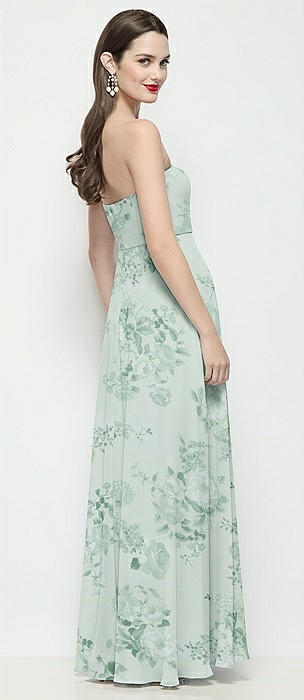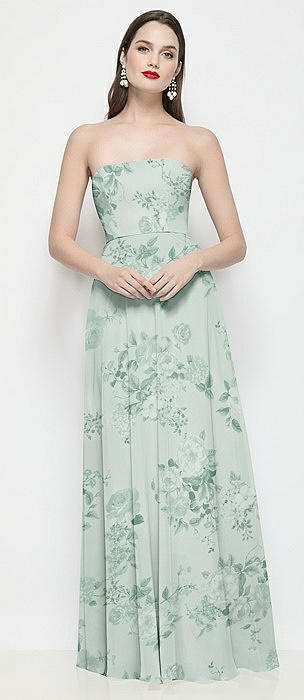 Strapless Chiffon Floral Maxi Dress with Soft Circle Skirt in mint green floral
