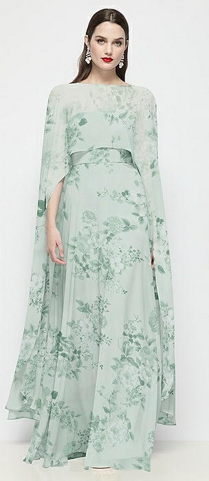 High-Low Sheer Floral Chiffon Cape in mint green floral