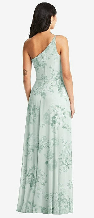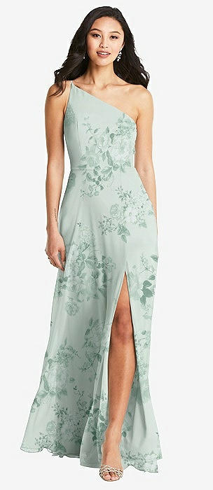 One-Shoulder Draped Chiffon Maxi Dress - Dani in mint green floral