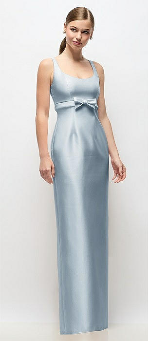 Scoop Neck Satin Column Maxi Dress with Bow at Empire Waist in mist