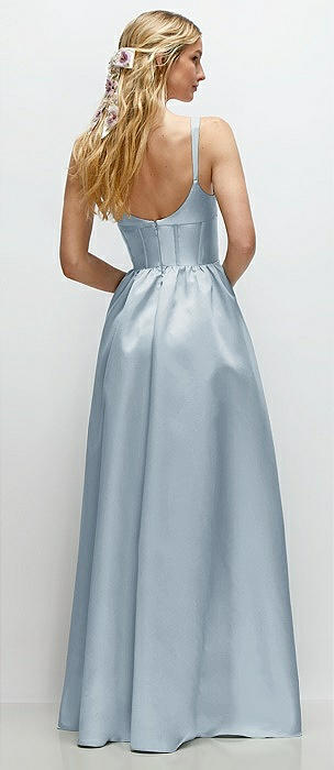 Strapless Bias Cuff Bodice Satin Gown with Pockets in mist