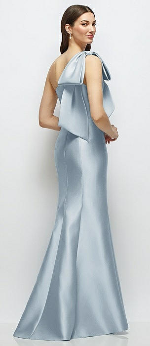 Bow One-Shoulder Satin Maxi Dress with Trumpet Skirt in mist