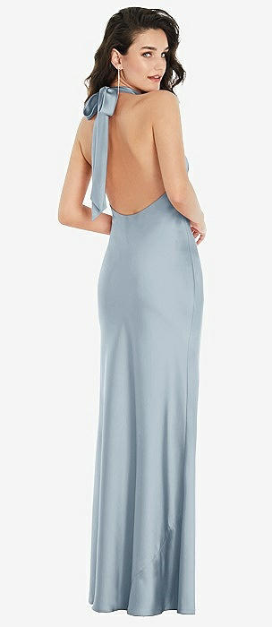 Draped Twist Halter Tie-Back Trumpet Gown in mist
