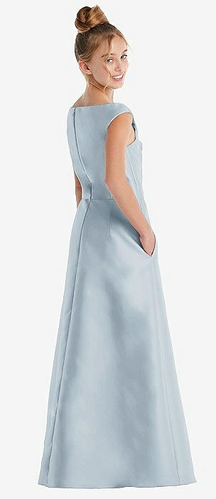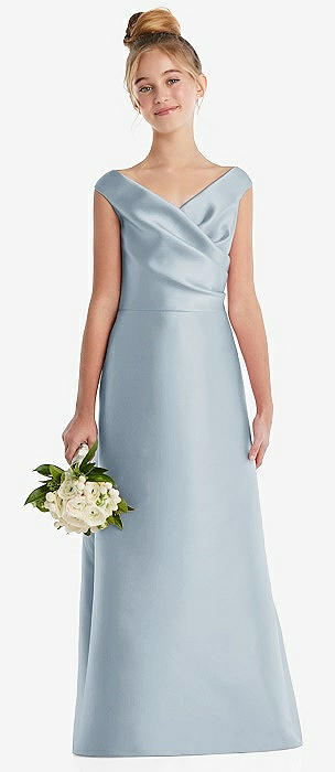Off-the-Shoulder Draped Wrap Satin Junior Bridesmaid Dress in mist