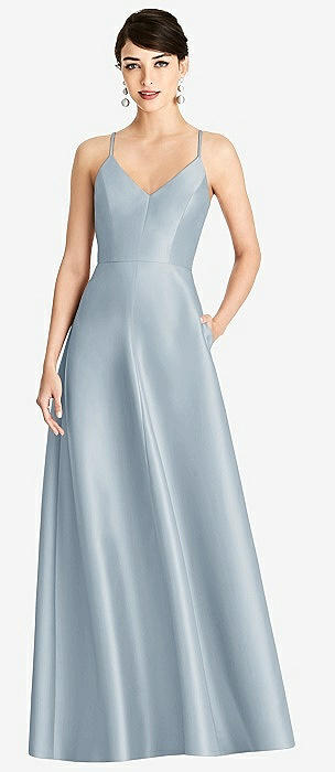 Sleeveless A-Line Satin Dress with Pockets in mist