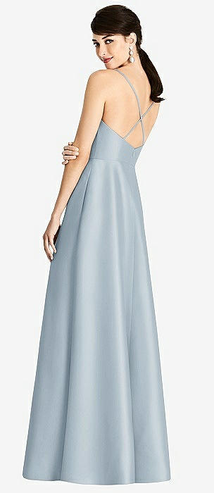 V-Neck Full Skirt Satin Maxi Dress in mist