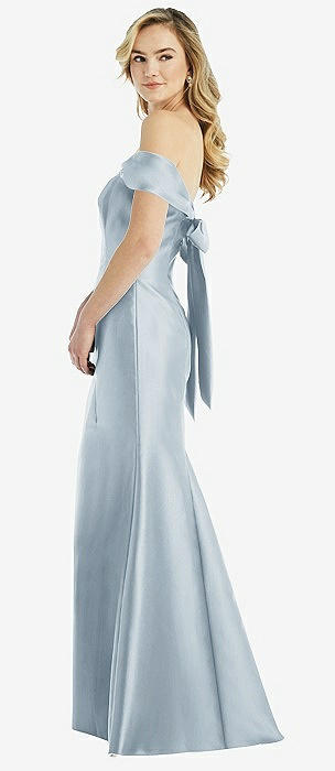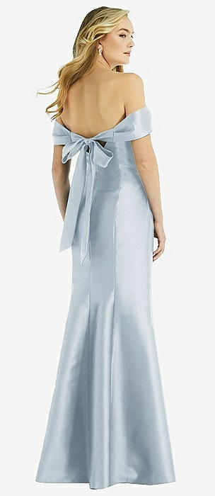 Off-the-Shoulder Bow-Back Satin Trumpet Gown in mist