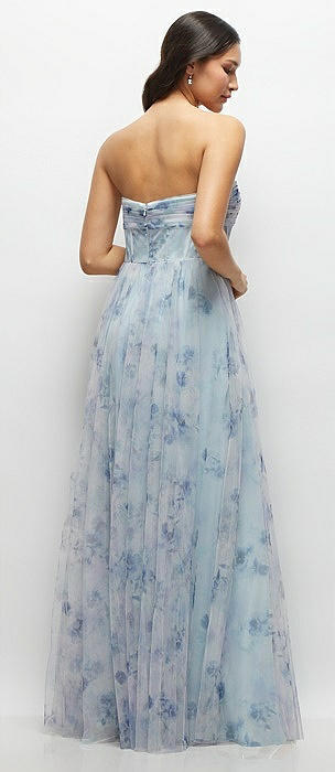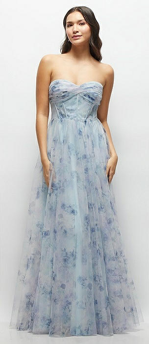 Floral Strapless Twist Cup Corset Tulle Dress with Long Full Skirt in mist garden
