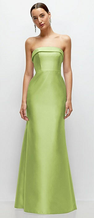 Strapless Satin Column Dress with Back Slit in mojito