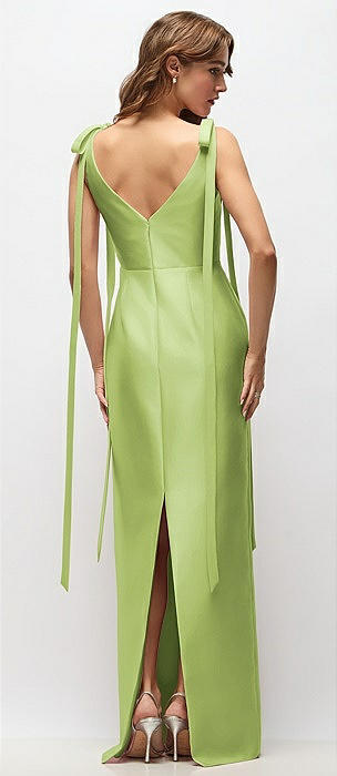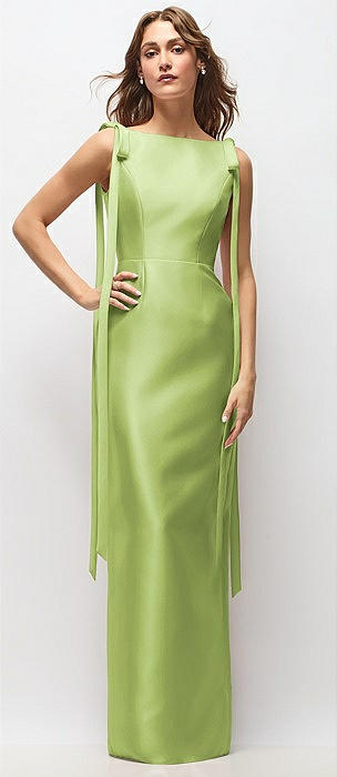 Bateau Neck Satin Column Maxi Dress with Exaggerated Tail Bow Straps in mojito