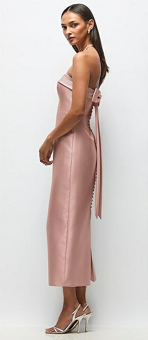 Strapless Cuff Satin Midi Dress with Column Skirt & Back Bow in neu nude
