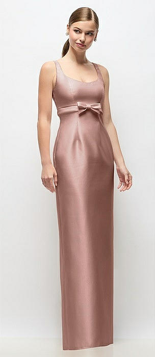Scoop Neck Satin Column Maxi Dress with Bow at Empire Waist in neu nude