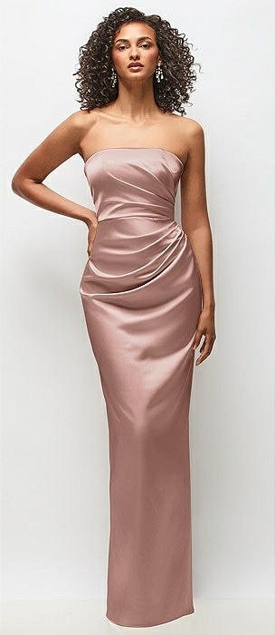 Strapless Draped Bodice Stretch Satin Column Maxi Dress in neu nude