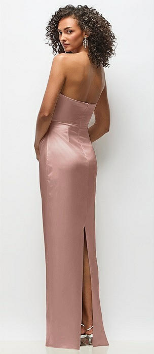 Strapless Asymmetrical Draped Satin Column Maxi Dress in neu nude