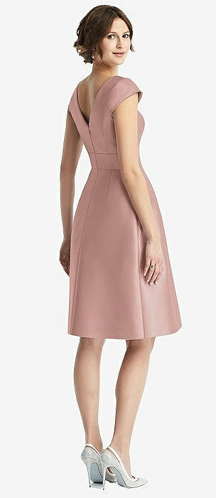 Cap Sleeve Pleated Cocktail Dress with Pockets in neu nude