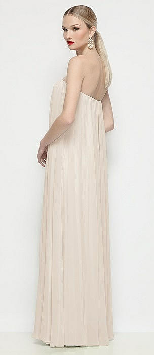Strapless Shirred Chiffon Trapeze Maxi Dress in oat