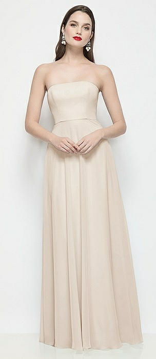 Strapless Chiffon Maxi Dress with Soft Circle Skirt in oat