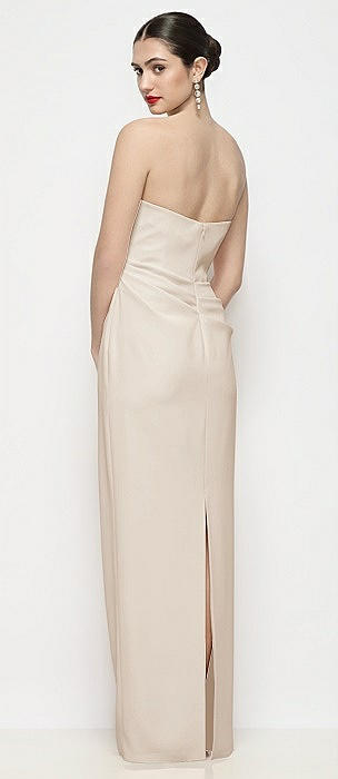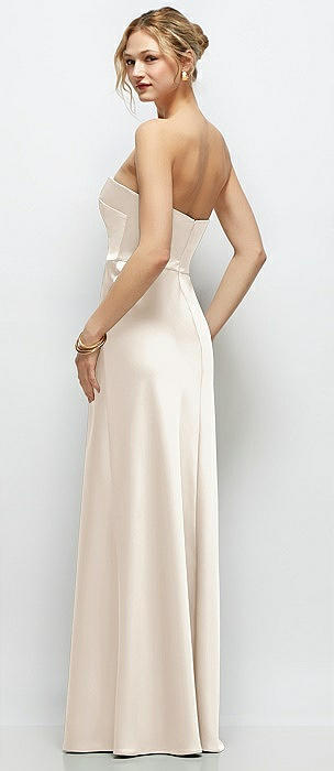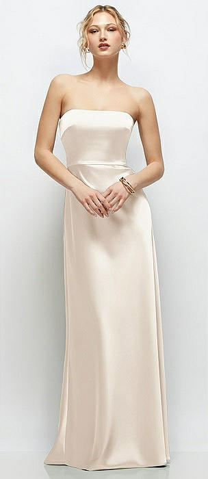Strapless A-Line Stretch Satin Maxi Dress in oat