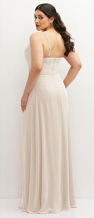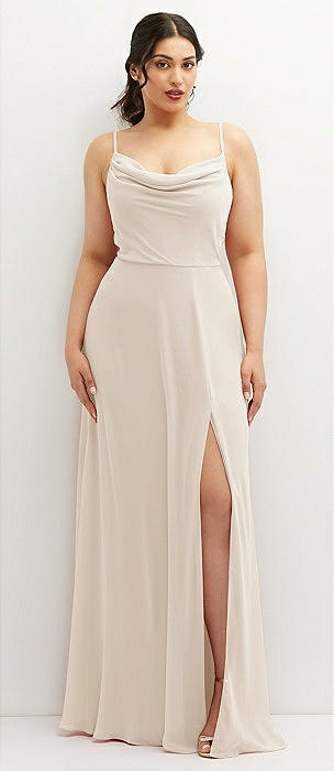 Cowl Neck Chiffon Maxi Dress with Hand-Worked Petal Straps in oat