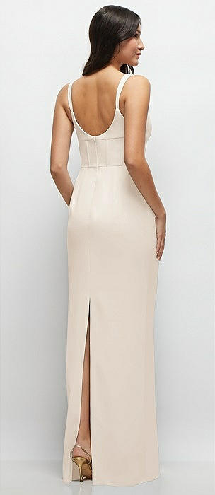 Corset-Style Crepe Column Maxi Dress with Adjustable Straps in oat